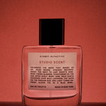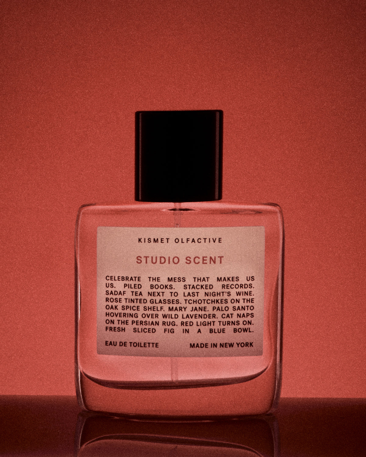 Studio Scent celebrates the mess that makes us us: used books and vintage records piled up around the room; a cup of steeped black tea next to last night’s glass of wine; dusty tchotchkes on the oaken spice shelf; mary jane; palo santo smoke hovering over a vase of wilting lavender; allure coming from the bedroom; two soft figs in a bowl of oranges.