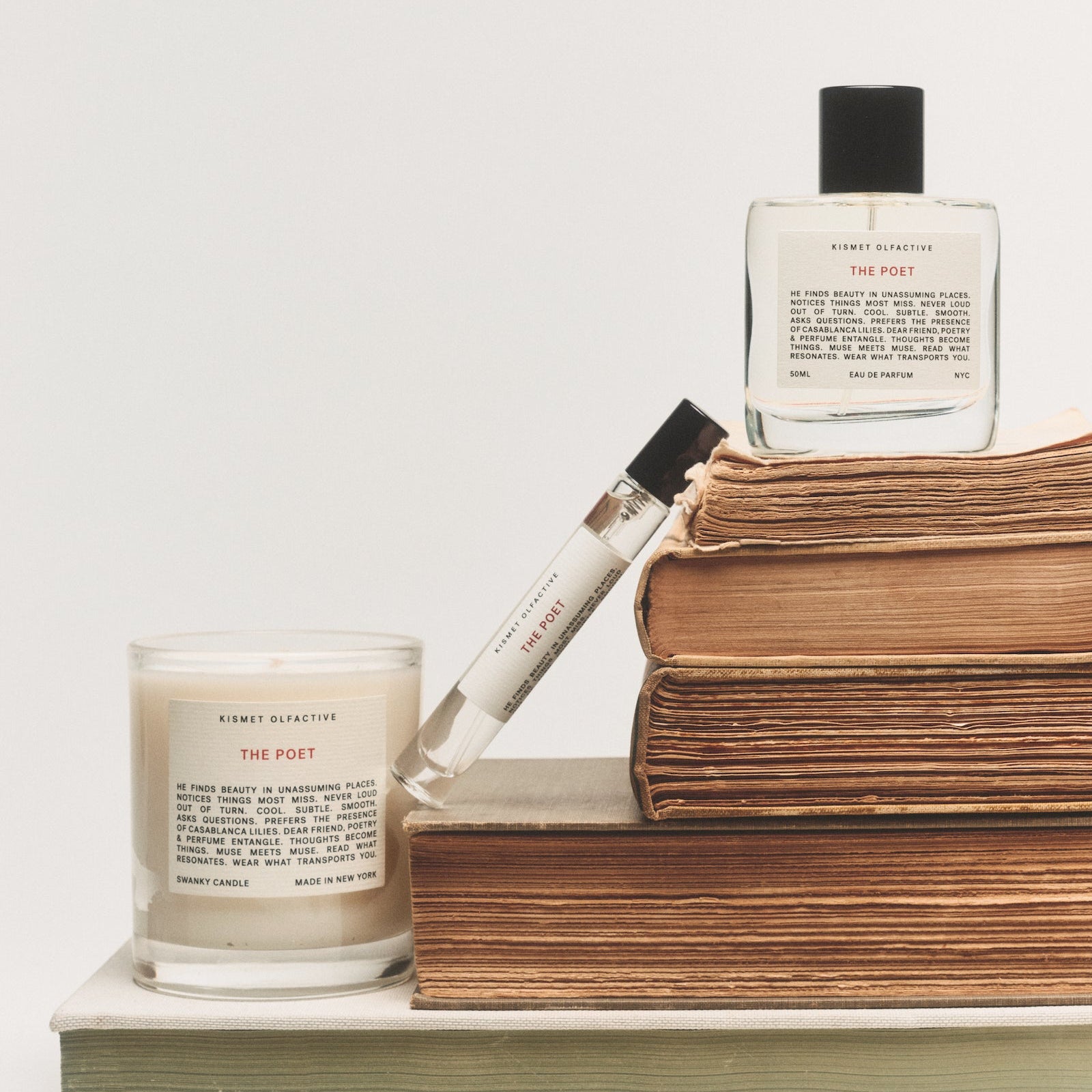 A sophisticated amber-wood fragrance, The Poet is rounded out with sensual leather and ambrette musk, warm patchouli, grapefruit, and hints of sweet tonka bean.
