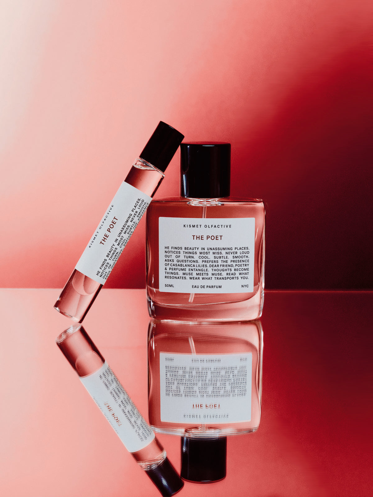 The Poet fuses floral Casablanca lily with eastern wood and resin notes including Moroccan Atlas cedar, Omani frankincense, and Indian sandalwood.